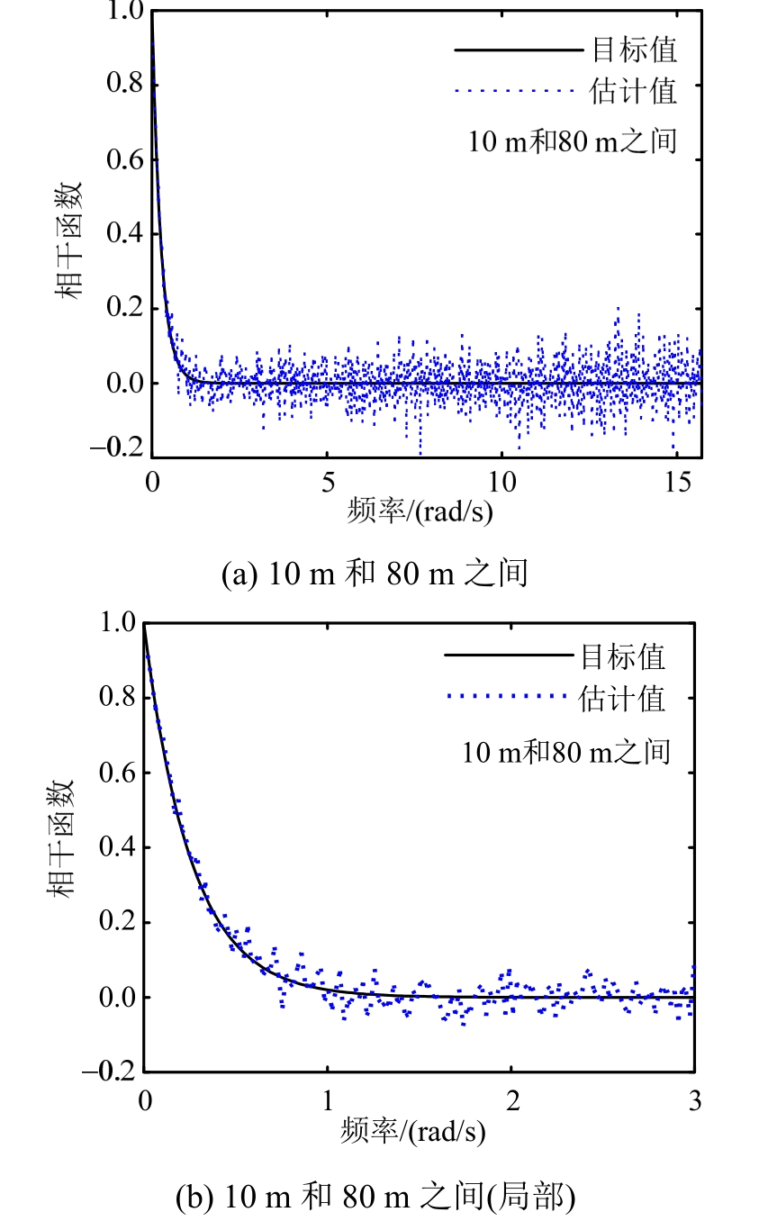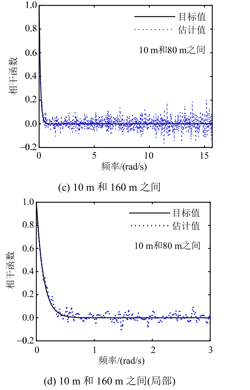 可以看到,基于样本估计的自功率谱密度函数、互相关函数和相干函数与目标值均吻合良好,验证了本文建议方法的有效性。