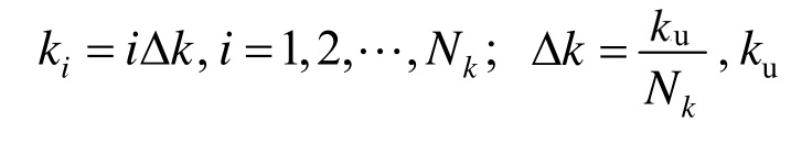 式中:Npt为离散点的个数;Ai为第i个离散点的代表面积(对于多维空间的波数-频率高维区域离散,Ai为第i个离散点的代表体积),其计算方法可以类比计算Voronoi区域赋得概率的方法[24];ki和ωi分别为第i个离散点对应的波数和频率;