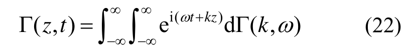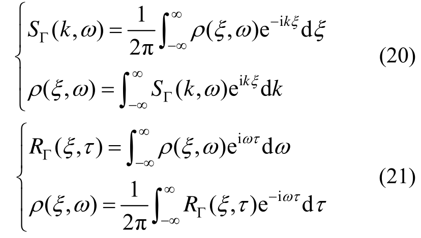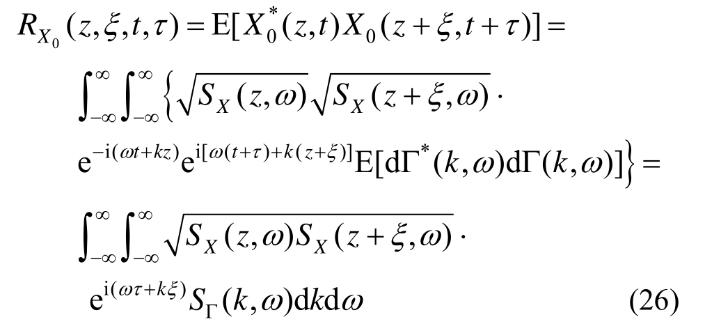 记在时间-空间域上的均匀随机场为Γ(z,t),其功率谱密度函数和相关函数分别为SΓ (k,ω)和