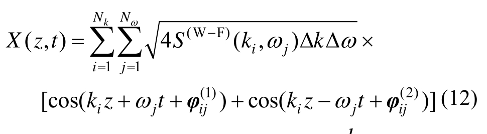 为二维波数-频率域内的离散点。利用这一方法进行下文算例中的波数-频率域离散,由于不同高度处的波数-频率联合功率谱不同,这里选取最高点的联合功率谱,即