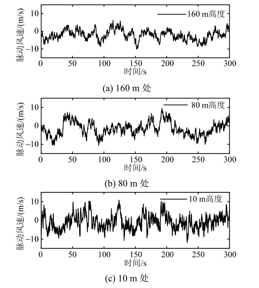 在高层建筑、大跨桥梁以及大型风力发电系统等结构中,风荷载往往是对结构安全性起控制作用的因素,因此长期以来对于风场的研究一直是众多学者关注的重点。通常,风速随着空间和时间而变化,因此空间不同位置处的风速往往处理为具有相关性的随机过程,并采用互功率谱密度函数矩阵刻画风场的特征[1-3]。随着对结构在风荷载作用下非线性效应的日益关注,脉动风速场的模拟,即如何根据给定的功率谱密度函数或矩阵生成脉动风速时程,是结构风振随机响应分析与可靠性设计中的关键环节之一。在许多实际工程中,一般只考虑空间中多个离散点的纵向分量的风速时程[4-5]。