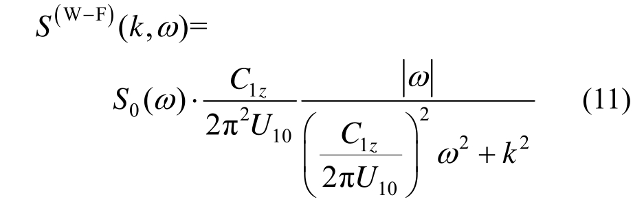 由此,可以得到一维空间均匀脉动风场的波数-频率联合功率谱: