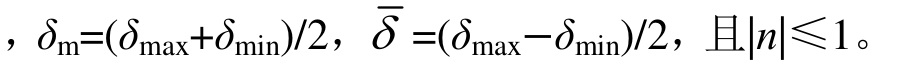 且δ∈(0,1]。δ=1表示作动器正常工作;δ=0表示作动器完全失效;0<δ<1表示作动器部分失效,但仍可以工作。假设δ的最大值为δmax,最小值为δmin,则δ可以表示为: