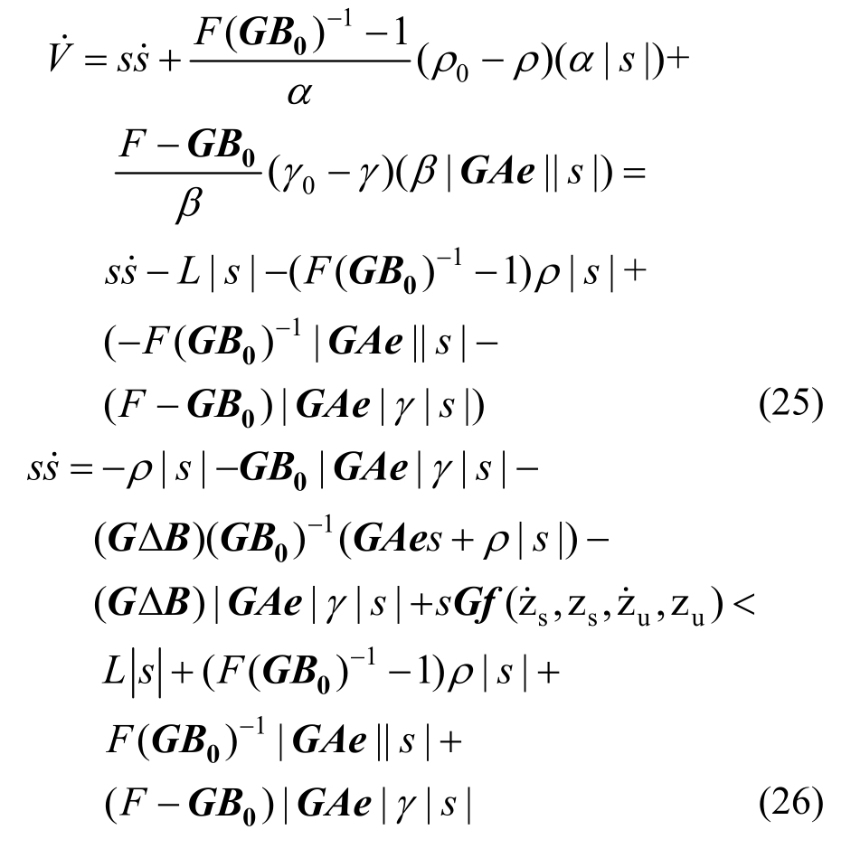 =0,则可使误差变量e1和e2都趋近于零,从而达到主动悬架理想的隔振效果。