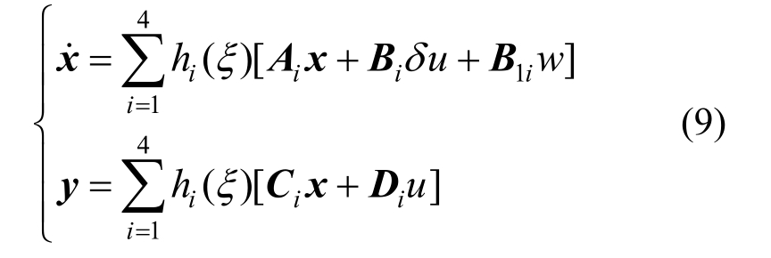 由此,根据上述模糊规则,考虑悬架系统质量不确定性的车辆主动悬架系统可通过T-S模糊模型表示为: