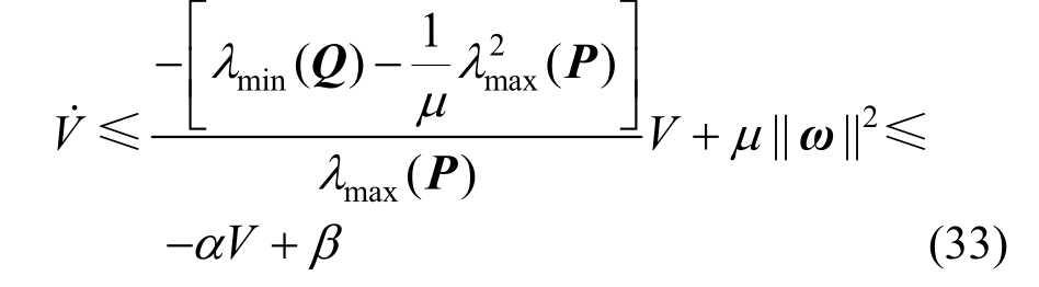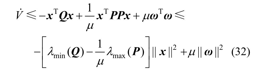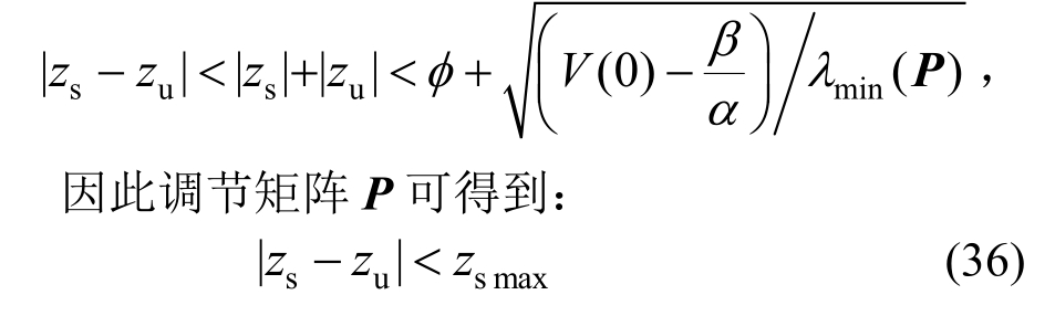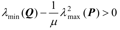 因此,通过选取适当的参数μ和矩阵P,可以使得下式成立:
