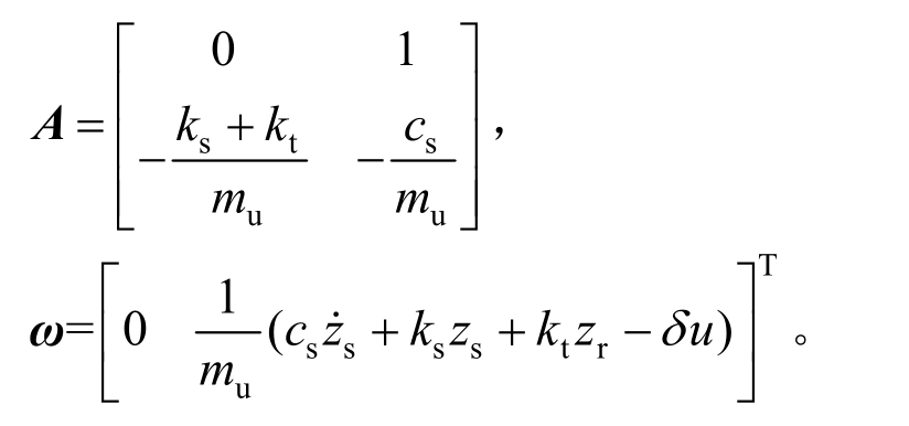 分别作为系统状态变量,路面扰动w=