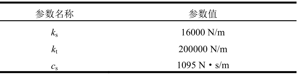 参数名称 参数值ks 16000 N/m kt 200000 N/m cs 1095 N·s/m