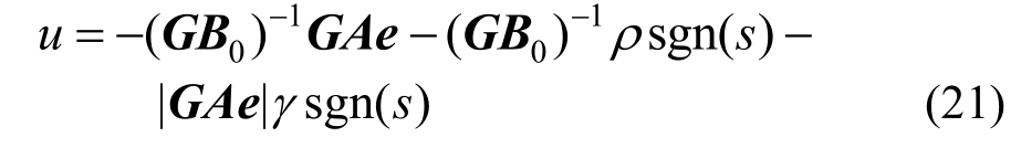 在滑模运动时,式(16)为滑动模态的运动微分方程,它决定了滑动模态的动态品质。为保证广义误差滑模面的渐近稳定性,必须使滑模运动方程的全部特征根位于复平面左半平面上。当系统状态处于滑模切换面上时,有s=