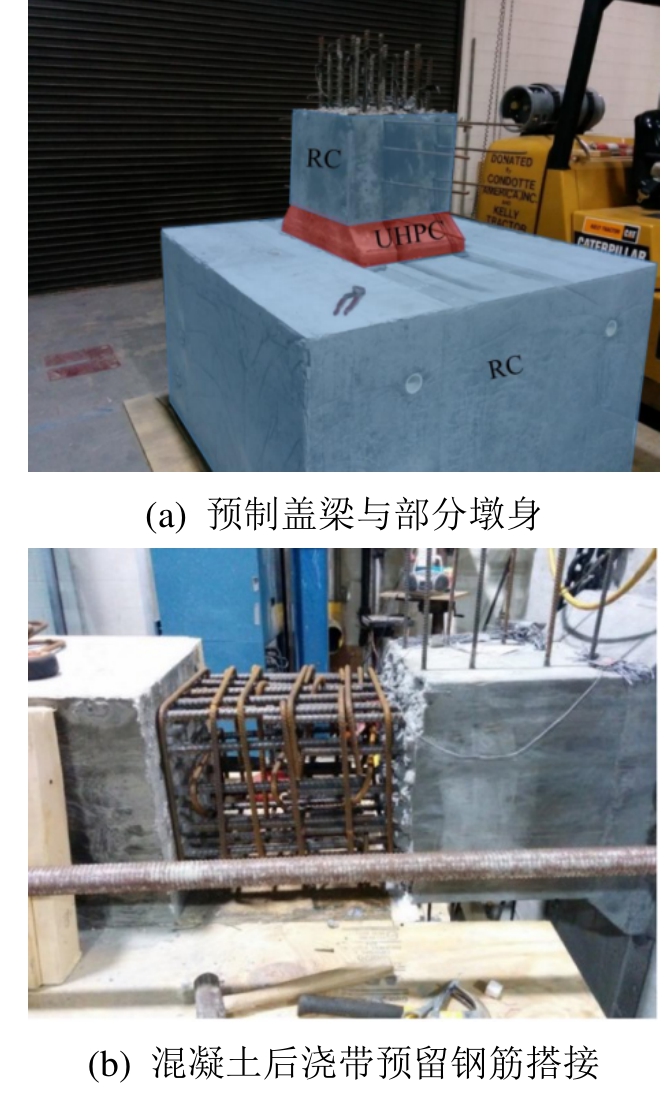 图13 现浇UHPC湿接缝连接“等同现浇”预制桥墩的拟静力试验[61]