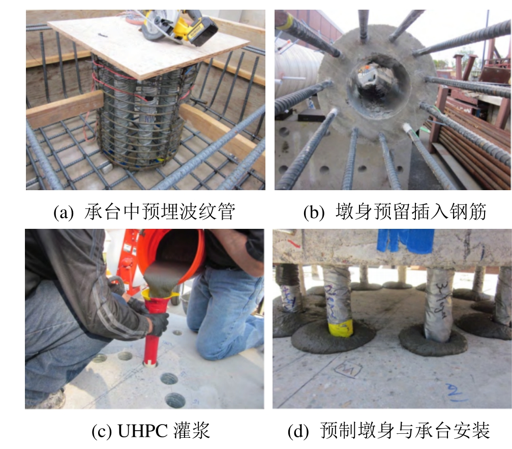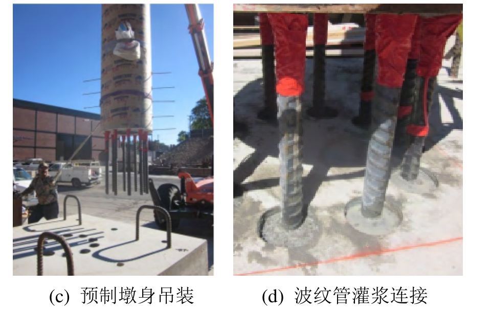 图4 采用波纹管灌浆连接“等同现浇”预制桥墩的典型工程应用