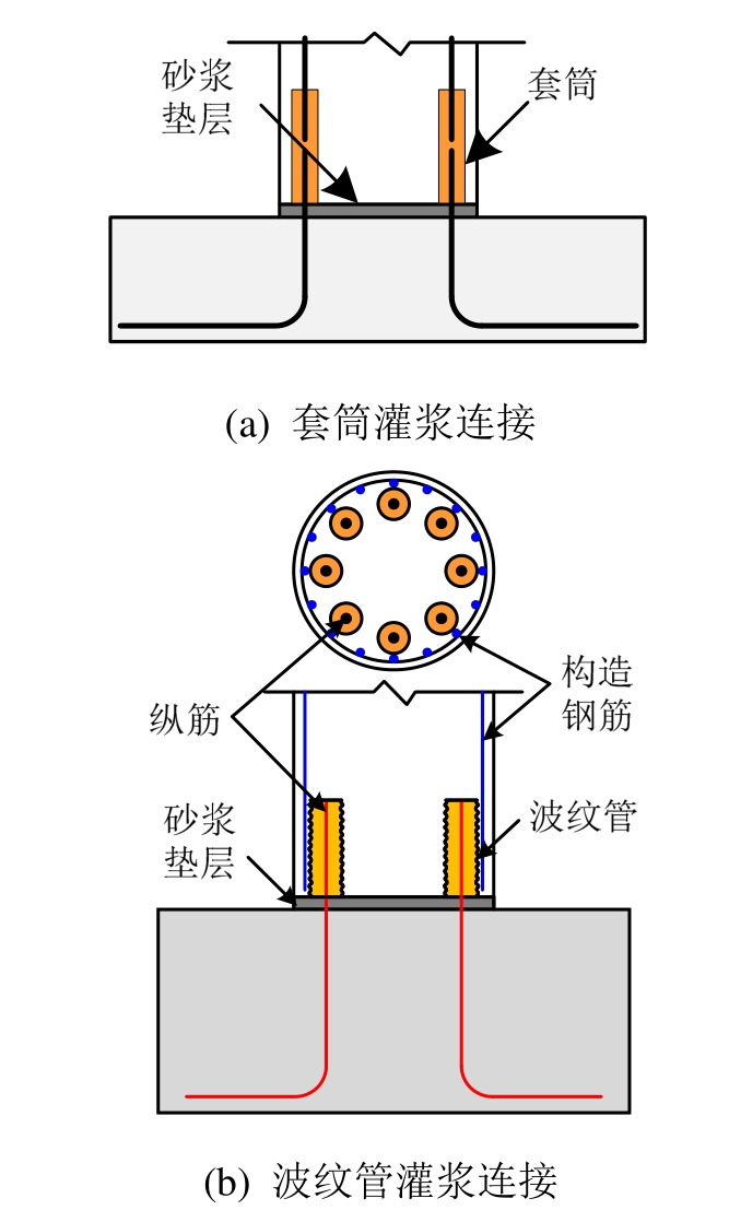在工程实践中,如图2所示,用于建造“等同现浇”预制桥墩的连接形式主要包括套筒灌浆连接、波纹管灌浆连接、预留槽孔的灌浆连接、承插式连接等[3],针对这几种连接形式,各国学者从连接性能到由预制桥墩整体抗震性能都开展了较广泛的研究。