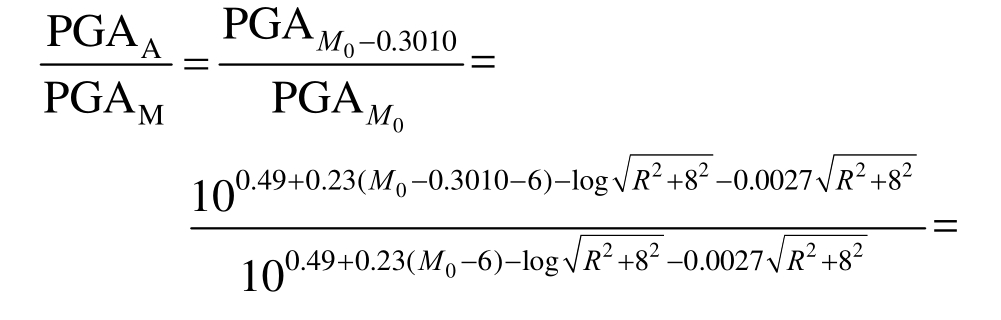 由式(3)和式(4)可知,余震与主震PGA之比为: