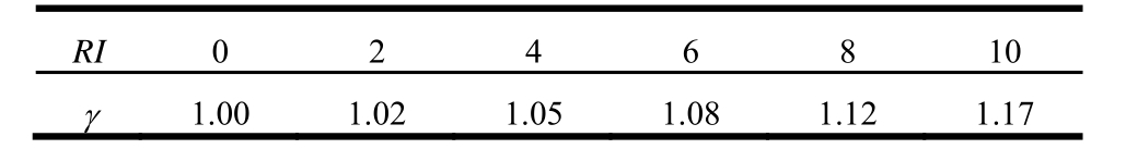 RI 0 2 4 6 8 10 γ 1.00 1.02 1.05 1.08 1.12 1.17