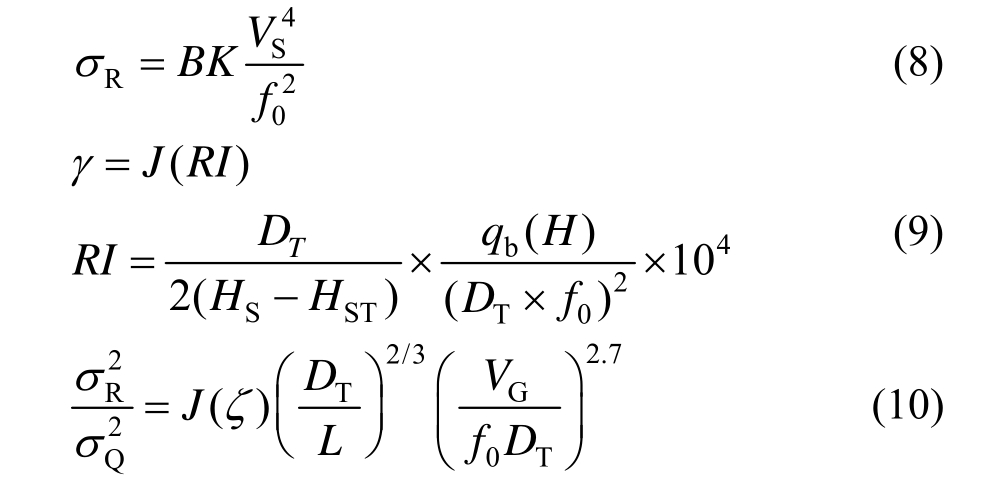 式中:B、K为计算参数;V S为场址风速;J表示函数关系;q b(H)为塔顶风压;V G为塔顶风速;L为紊流积分尺度,其他结构参数参见图1。