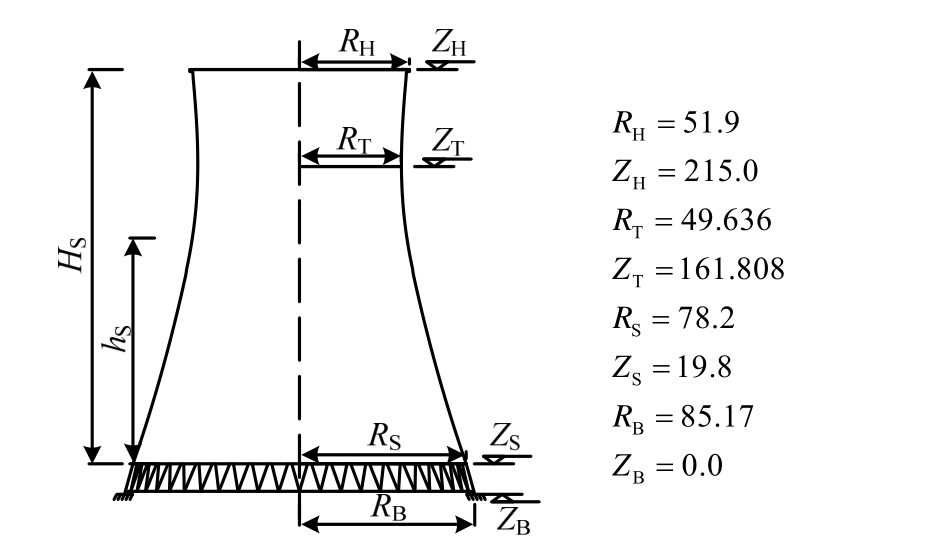 图1 冷却塔特征结构尺度 /m