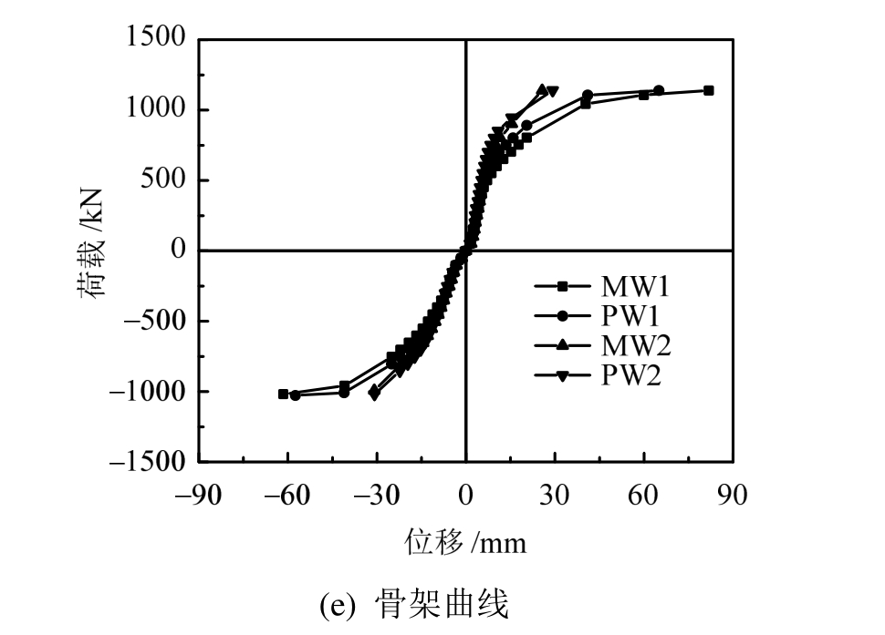 注:数据取正、反向实测值的绝对值的平均值;试件MW 2、PW 2以试验终止时荷载代替峰值承载力。