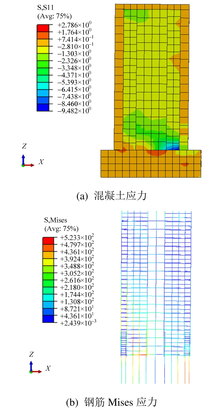 图12 试件PW 2有限元应力分析结果