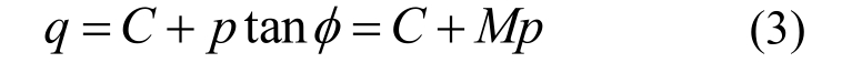 由图4可知,土体由状态进入破坏状态后,应力路径沿着临界线 CSL运动,由式(3)、式(6)、式(7)可得: