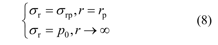 式(35)表示圆孔从r0变化到任意r处的径向应变和环向应变。联立式(1)、式(2)、式(35)有: