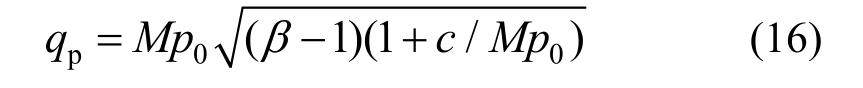 图3和图4中参数定义为:p f、q f分别为破坏状态时的平均应力及偏应力;q p为土体弹塑性交界处的偏应力;CSL为基于结构性黄土剑桥模型的临界状态线:M为CSL直线在p-q平面内裂土体过程中的斜率;λ(m n)为 e-ln p平面内与结构性相关的 CSL斜率;k为压缩过程中卸载段的斜率。M、λ(m n)由试验条件可以测得。在浆液劈裂土体过程中,根据 Collins和Stimpson[10]对于扩孔问题的研究,p、q定义为: