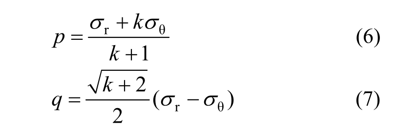 联立式(6)、式(7)、式(27)和式(29)可得土体塑性区内环向应力、正应力、偏应力为: