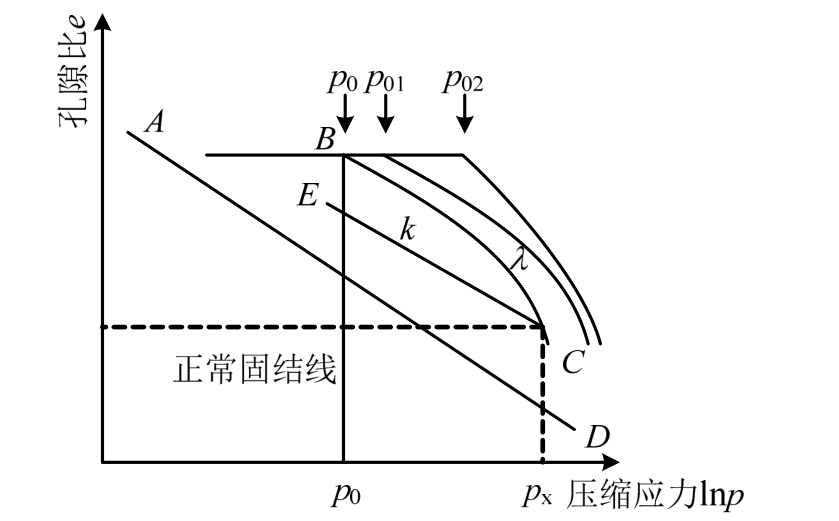 1.2.2 结构性黄土屈服面及原状土压缩曲线