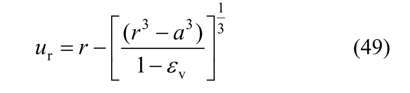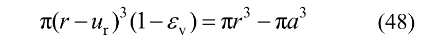 结合式(33)、式(34)、式(46),则塑性区与破坏区交界面处的体积应变为:
