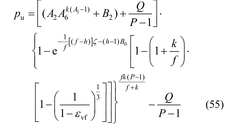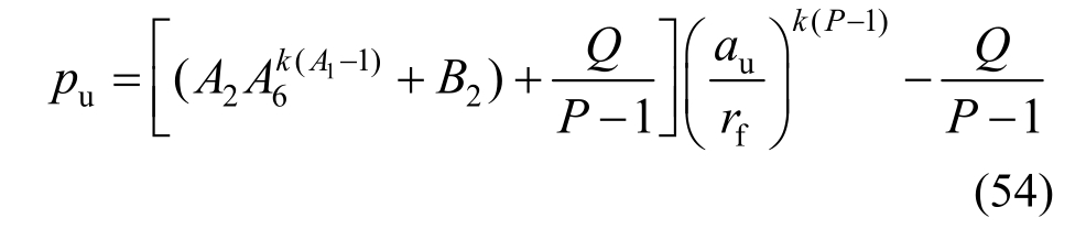 当孔径a→a u时,a0/a→0,将a u/r f的值代入式(54)则可得极限扩孔压力: