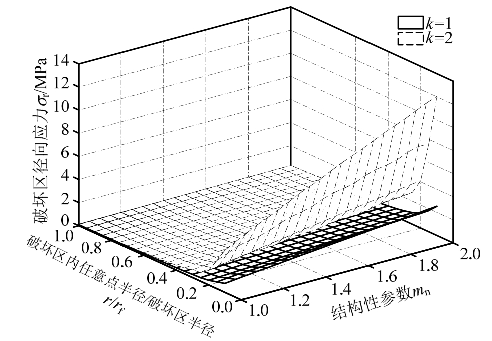 图9 破坏区中径向应力与参数m n和r/r f的关系