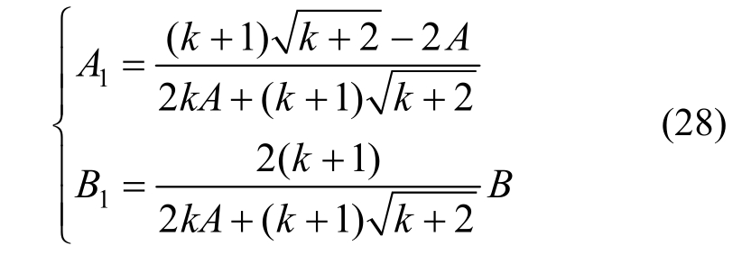 将B点坐标代入,结合式(22)、式(24)可得BC1方程中系数A、B分别为: