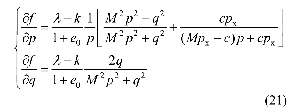 式(20)对八面体正应力p,偏应力q求导可得: