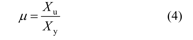 延性是指结构破坏之前,在承载力无显著下降的条件下,经受非弹性变形的能力。常用延性系数来表示结构的延性,延性系数越大,延性越好,抗震性能越好。延性系数包括转角延性系数、曲率延性系数和位移延性系数。本文采用位移延性系数来分析算例的延性,表达式为: