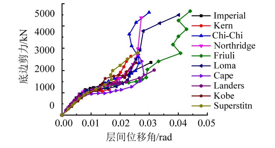 图9 底部剪力-最大层间位移角曲线