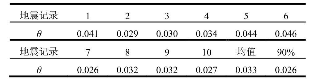 地震记录 1 2 3 4 5 6 θ 0.041 0.029 0.030 0.034 0.044 0.046地震记录 7 8 9 10 均值 90%θ 0.026 0.032 0.032 0.027 0.033 0.026