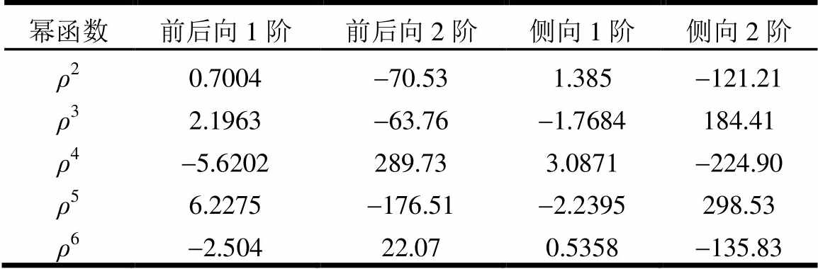 幂函数前后向1阶前后向2阶侧向1阶侧向2阶 ρ20.7004-70.531.385-121.21 ρ32.1963-63.76-1.7684184.41 ρ4-5.6202289.733.0871-224.90 ρ56.2275-176.51-2.2395298.53 ρ6-2.50422.070.5358-135.83