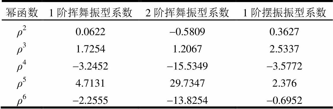 幂函数1阶挥舞振型系数2阶挥舞振型系数1阶摆振振型系数 ρ20.0622-0.58090.3627 ρ31.72541.20672.5337 ρ4-3.2452-15.5349-3.5772 ρ54.713129.73472.376 ρ6-2.2555-13.8254-0.6952