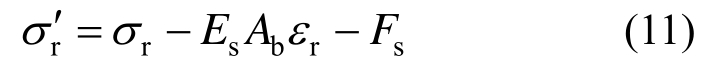 对于预应力锚杆,锚杆轴向力不仅包括与围岩相互作用产生的剪应力,还应包括施加于锚杆本身的预紧力Fs(以压应力为正,则此为负值),其中由Fs导致的锚杆轴向应变为常量,可表示为: