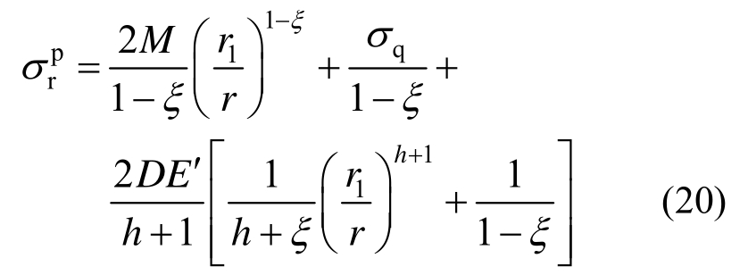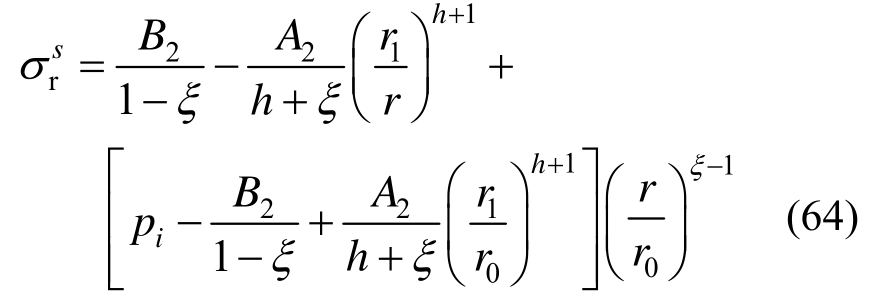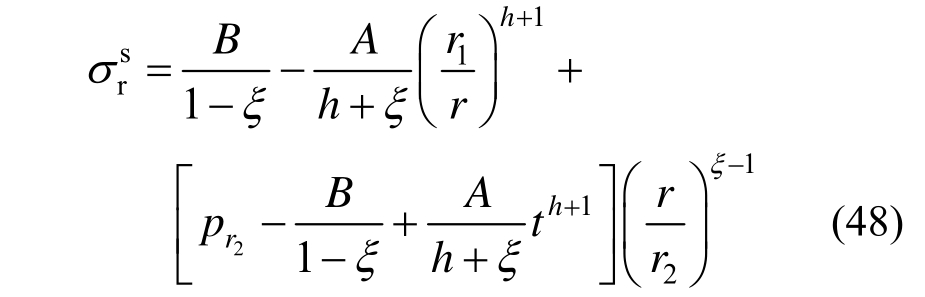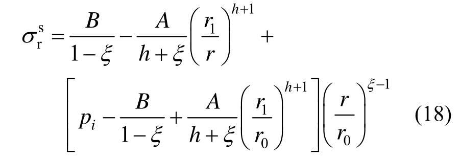 而围岩破碎区径向应力表达式为: