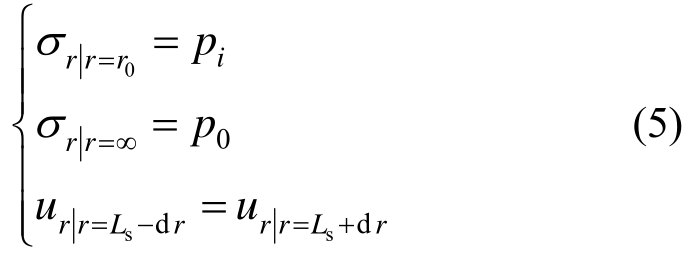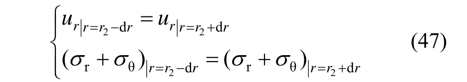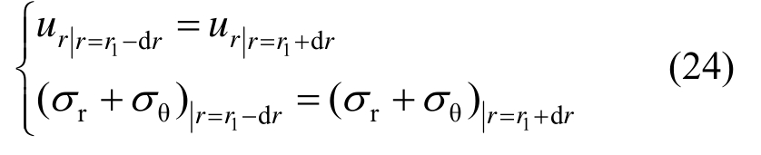 求解需要用到的边界条件除式(5)外,还需满足锚固区与原岩区边界上的应力连续条件: