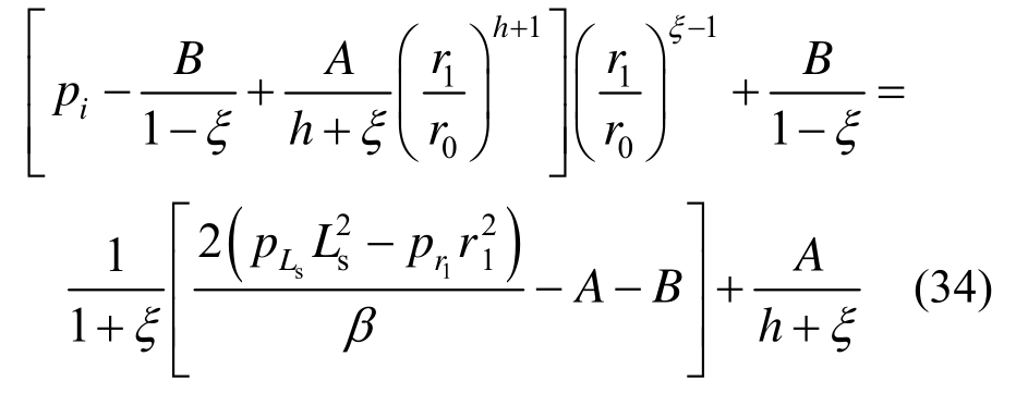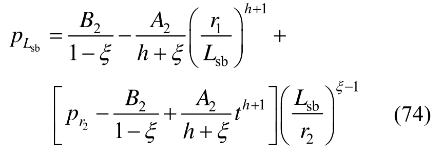 联立式(62)、式(67)、式(68)、式(71)~式(73)可求得r1、r2、pLsb、pLsc和pr1、