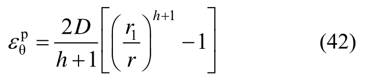 塑性软化区环向塑性应变为: