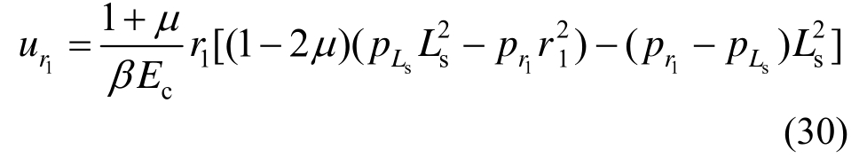 将式(6)中pi以pr1代替,r1代替r0可得软化区与弹性区界面位移为: