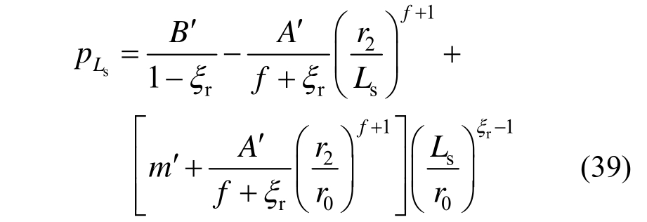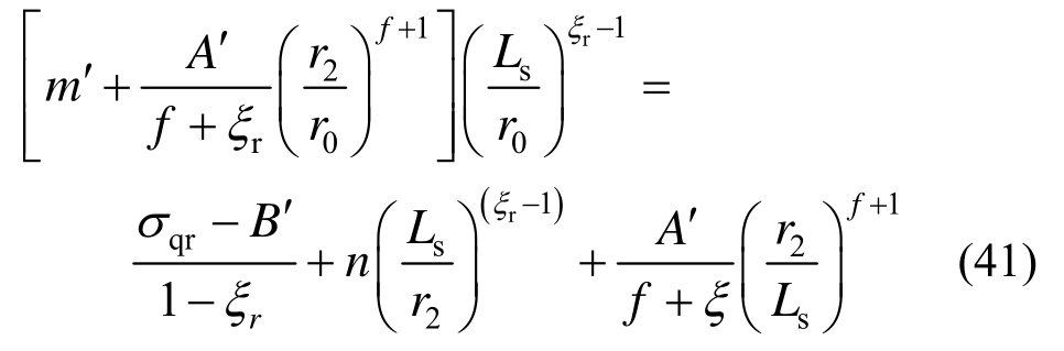 将r=Ls代入式(40)并与式(39)联立并考虑式(12)得破碎区半径r2满足: