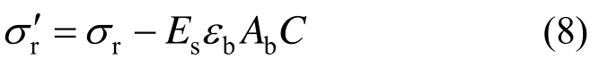 Huang等[16]指出,锚杆对于围岩的作用可通过在岩体中施加径向约束力来描述。因此,本文参考文献[17]的思想,将锚杆对塑性围岩的控制作用描述为岩体径向应力的增加,即由于锚杆对围岩的约束作用,围岩对锚杆产生轴向反力作用。考虑到锚杆的作用,调整后的围岩径向应力可表示为[3]: