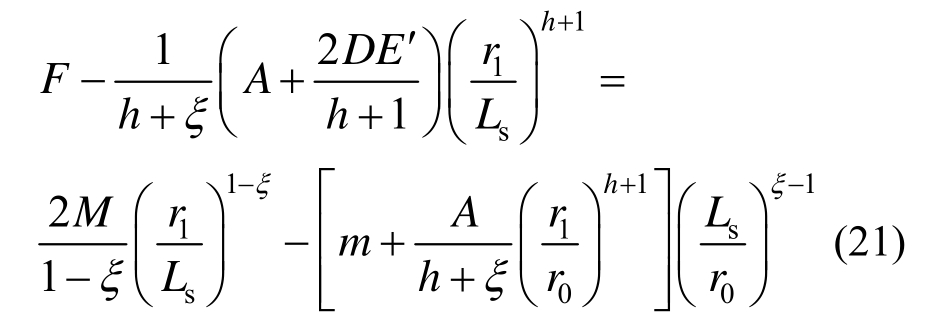 将r=Ls 代入式(20)与式(1)和式(19)联立并考虑式(12)得软化区半径r1满足: