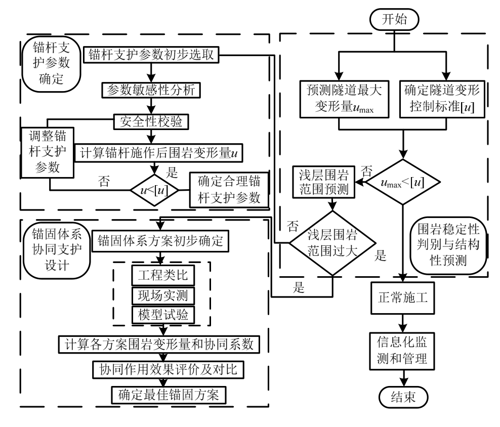 实际工程中,由于地层条件的复杂性,隧道围岩结构也呈现出多样性,给隧道设计和施工带来极大挑战。在复杂围岩条件下,如何合理确定锚固体系参数是隧道施工所面临的难点及重点问题。因此,本文提出一种基于锚固体系协同作用的隧道锚固参数的确定方法,具体如图7所示。
