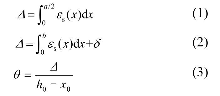 式中:Δ为锚固钢筋相对滑移量;a为中柱内受拉纵筋锚固长度,如图16(a)所示;b为边柱内受拉纵筋直锚段长度,如图16(b)所示;x0为截面实际受压区高度;θ为应变渗透引起的附加转角。