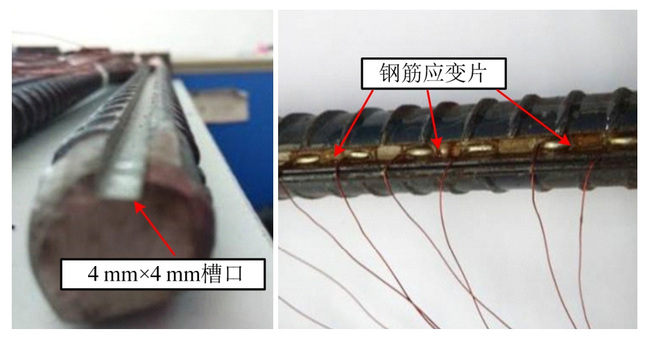 图3 钢筋剖槽贴应变片