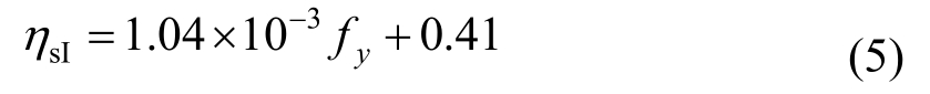 式中,ηsI为钢筋屈服强度对第一阶段弯矩调幅影响系数,按式(5)计算。统计分析表明,拟合公式计算值βI,c与试验值βI,t之比的平均值